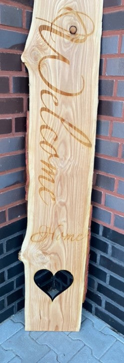 Ist mit einem slogan "Welcome Home"mit Herz gelasert worden die Aufschrift dunkelt noch stark nach.