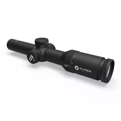 Das ALPEN OPTICS Apex XP 1–6x24 ist ein typisches Drückjagd Zielfernrohr mit einem Mittelrohrdurchmesser von 30 mm. Es überzeugt durch das tageslichttaugliche Duplex-Leuchtabsehen und ein sensationelles Sehfeld von rund 38 m auf 100 m. Dabei befindet sich das Absehen in der 2. Bildebene (Okularbildebene) und vergrößert sich nicht mit. Die Absehen-Verstellung regelst du an diesem Zielfernrohr ganz einfach mit MRAD – also pro Klick 1 cm auf 100 m. Damit entfällt die Umrechnung mit M.O.A. (Minute of Angle). Zudem ist das robuste ALPEN OPTICS Apex XP 1–6x24 Zielfernrohr absolut wasserdicht und schussfest.