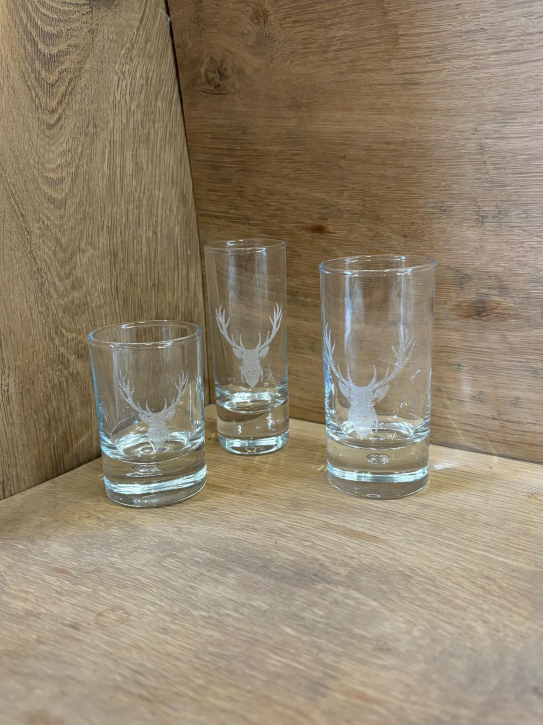Schnapsglas / Shotglas mit Hirschkopf Gravur